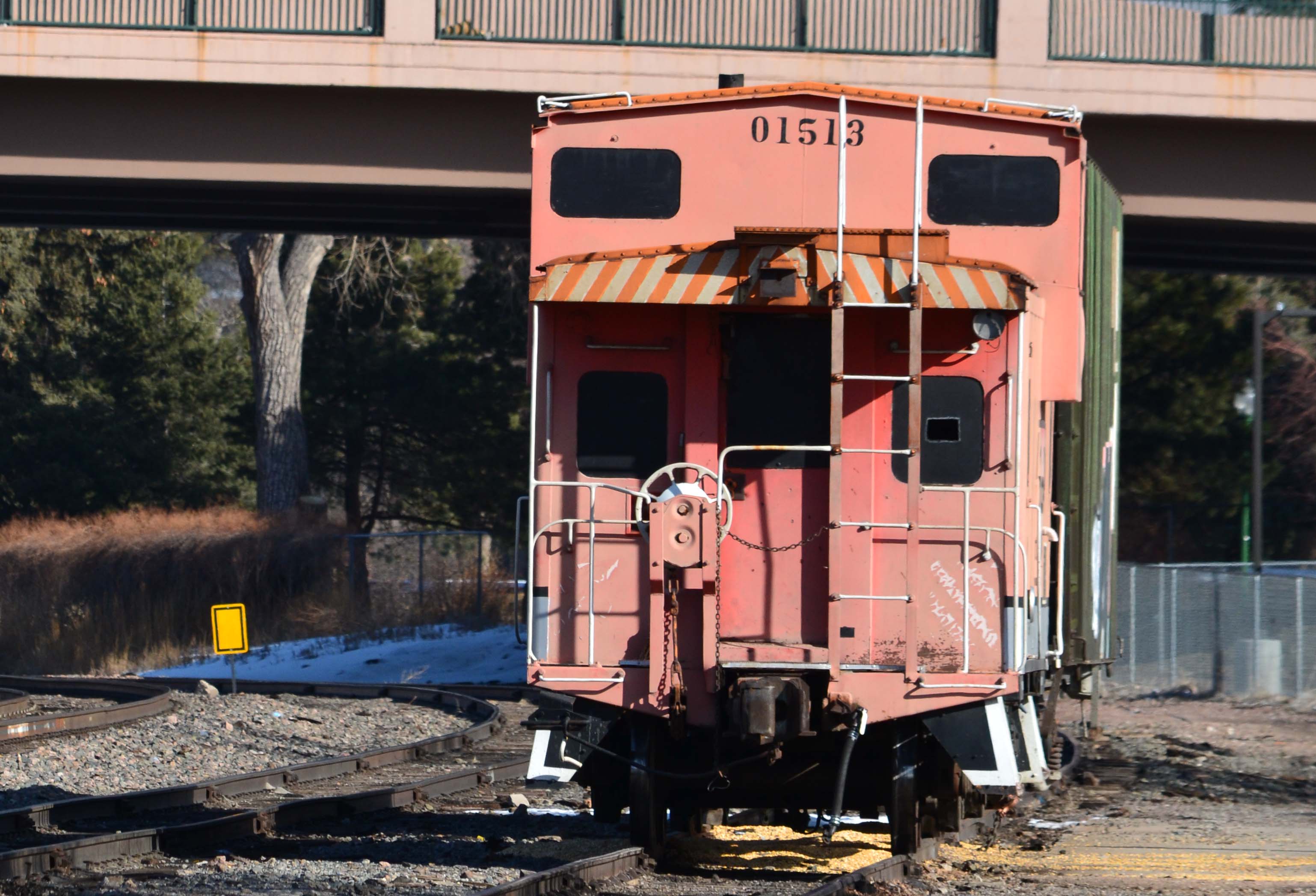 Caboose 01513, in Colorado Springs. This particular caboose has been hanging around the city for a couple of decades. At some point just prior to 2009 a local group of volunteers repainted it in a very non-prototypical Rio Grande scheme. UP still uses it for local switching and backup moves. Top: on 2/17/2020. To my eye the zebra-striped area above the rear deck looks like original paint.Middle and bottom: views on 2/19/2022 just after sunset, thus the odd coloring. All the windows have been blanked, but it’s only used as a shoving platform now. For the uninitiated, the actual Rio Grande never used the Action Road herald on anything in conjunction with the silver-stripe scheme. It’s still pretty nonetheless. NEW IMAGES |