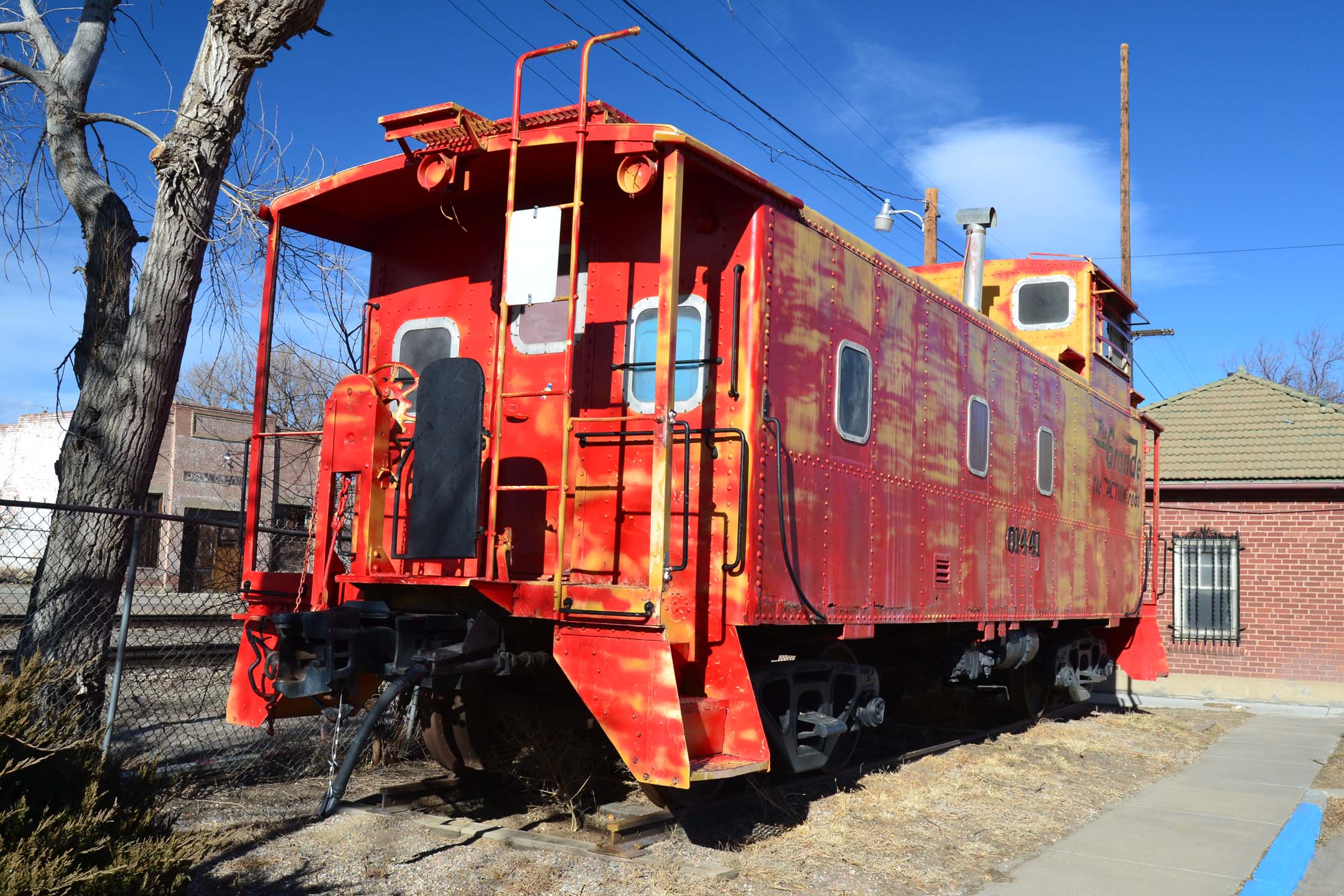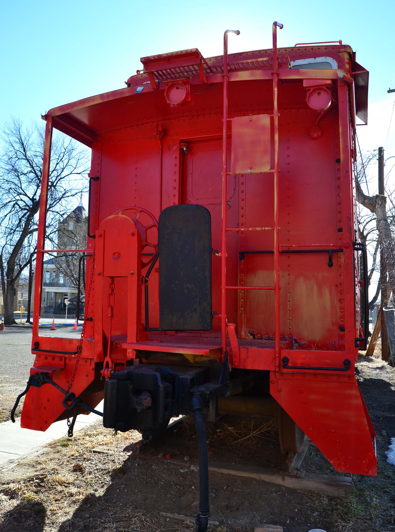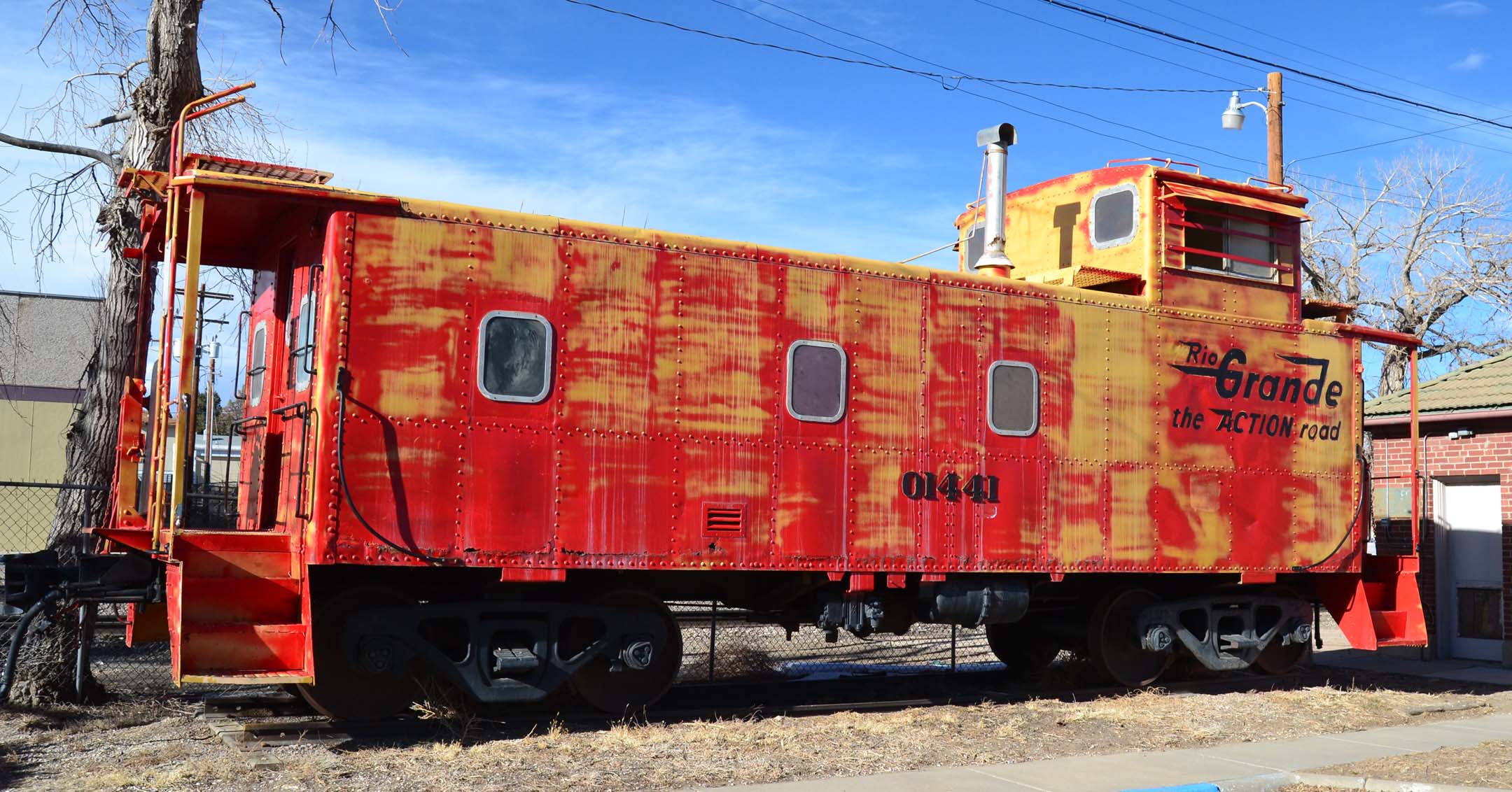 Caboose 01441, on display at Walsenburg, Colorado. Ignore the paint on this one, if you can… For many years it was painted in a pale yellow shade. Sometime around 2015 the town repainted it in a bright red, I guess because cabooses are supposed to be red? Anyway, by 2021 the red was beginning to fade on the sunny side, leaving this horrible hodgepodge of inaccurate colors.All that being said, the car itself is legitimate. It was probably built in December 1944. Originally it, like all the others, wore the solid black scheme. At some point it acquired the gold/silver/4-stripe scheme, then ended its days in the solid gold scheme.If you need access to a Rio Grande caboose for measurements, inspection, or whatever, this is your car. There’s absolutely no obstructions to it, save the chain-link fence on the north side that only messes with photography.It still has the famous raised numerals; see the photo.