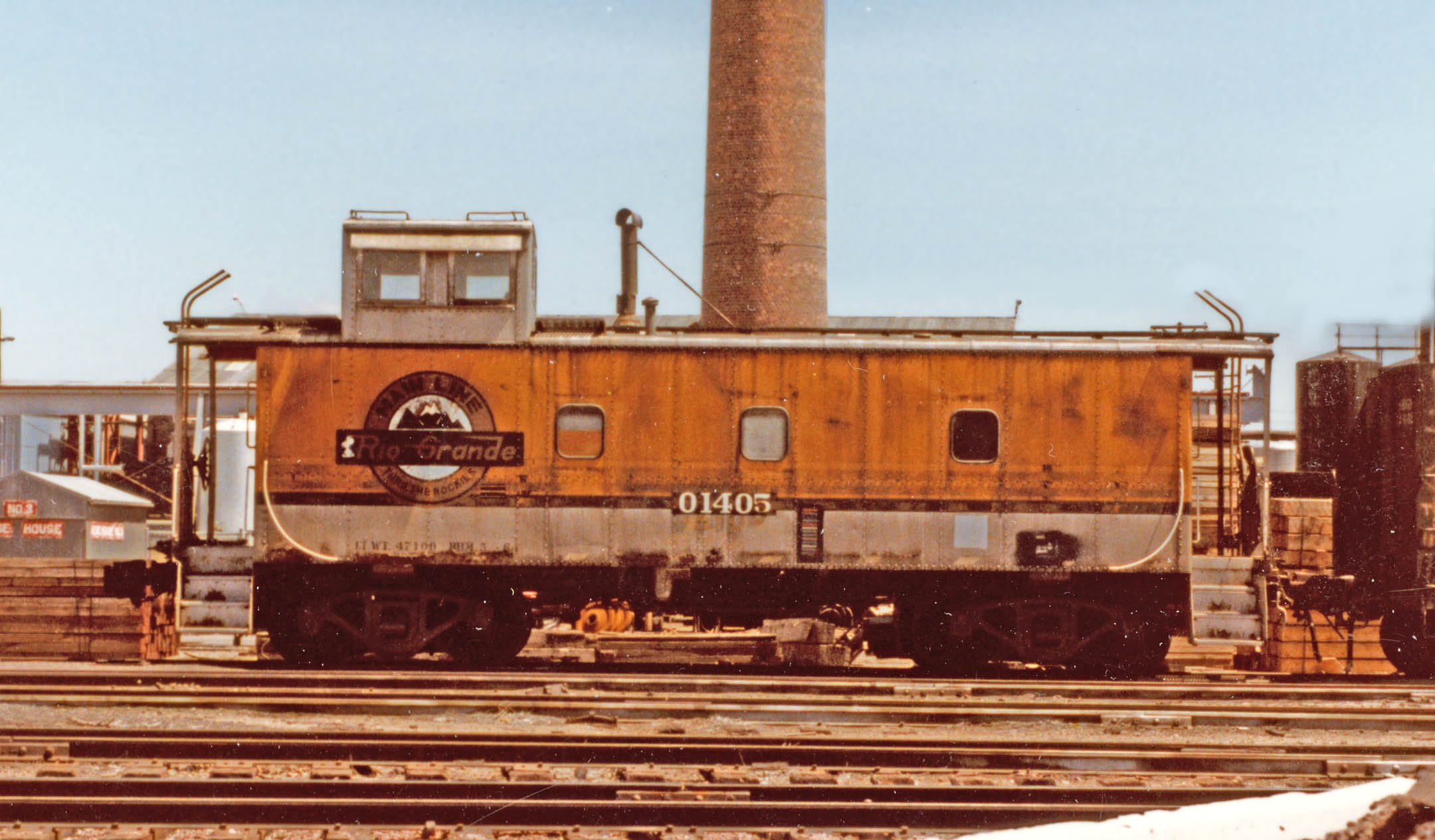 In the postwar period, Rio Grande rostered primarily two groups of cabooses. The first was a series of home-built steel cabs, designed to replace existing wooden cabooses, eventually totaling 91 cars.* These were built in batches of ten, between 1940 and 1959. (As these all-steel cars came into service, remaining wooden cars were rapidly retired.) The second group consisted of two orders of modern, wide-vision cabooses built by International Car (ICC) in 1966 and 1976.