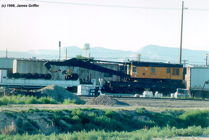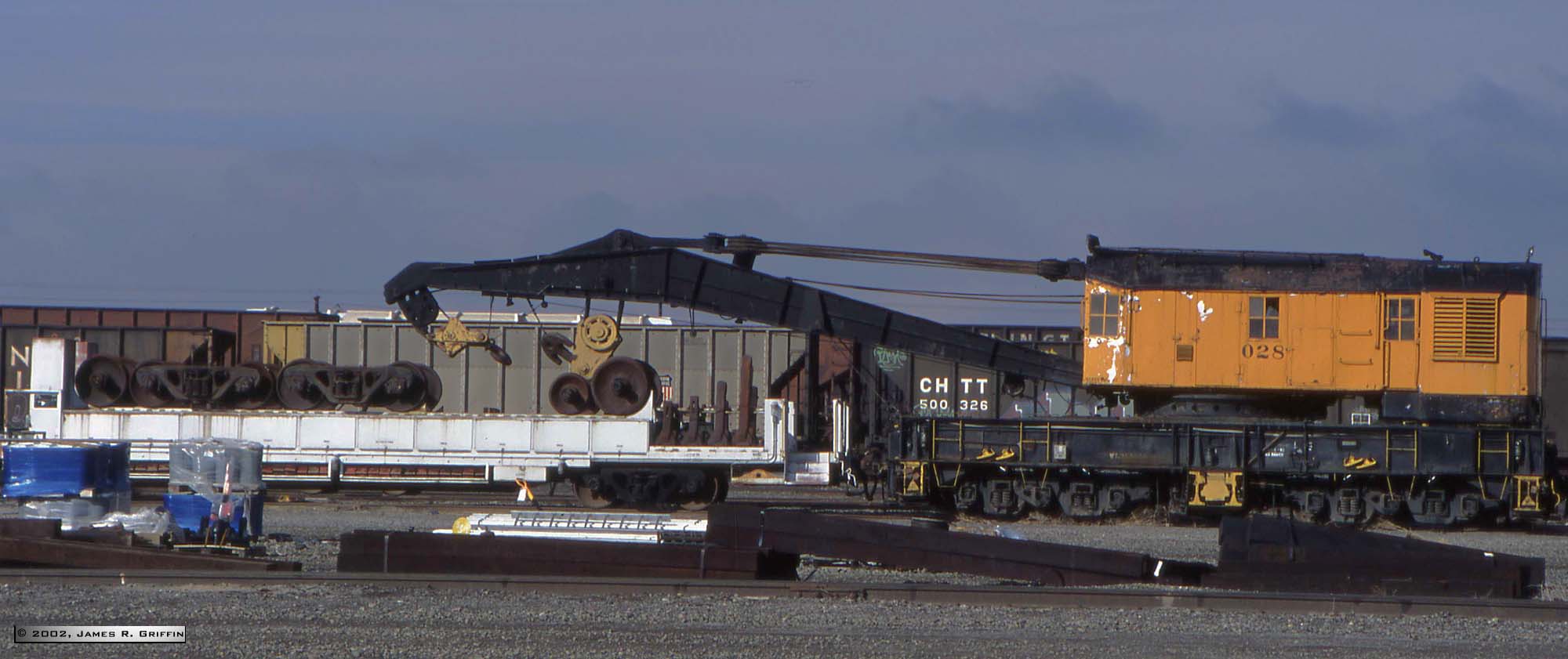 Derrick No. 028 again at Grand Junction, 12/01/2002. The wheel car / boom car is also visible.