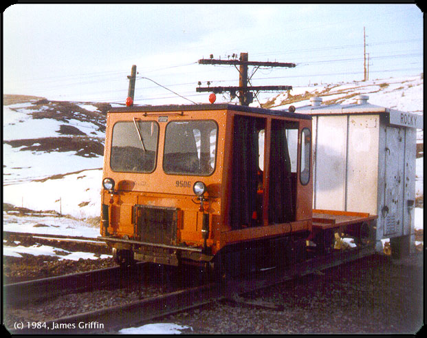 Track Speeder and tool cart– Parked by east Rocky, March 1984. This particular Fairmont speeder was being restored at the Glenwood Rail Museum (in the depot) circa 2006. Not sure of its current status. |