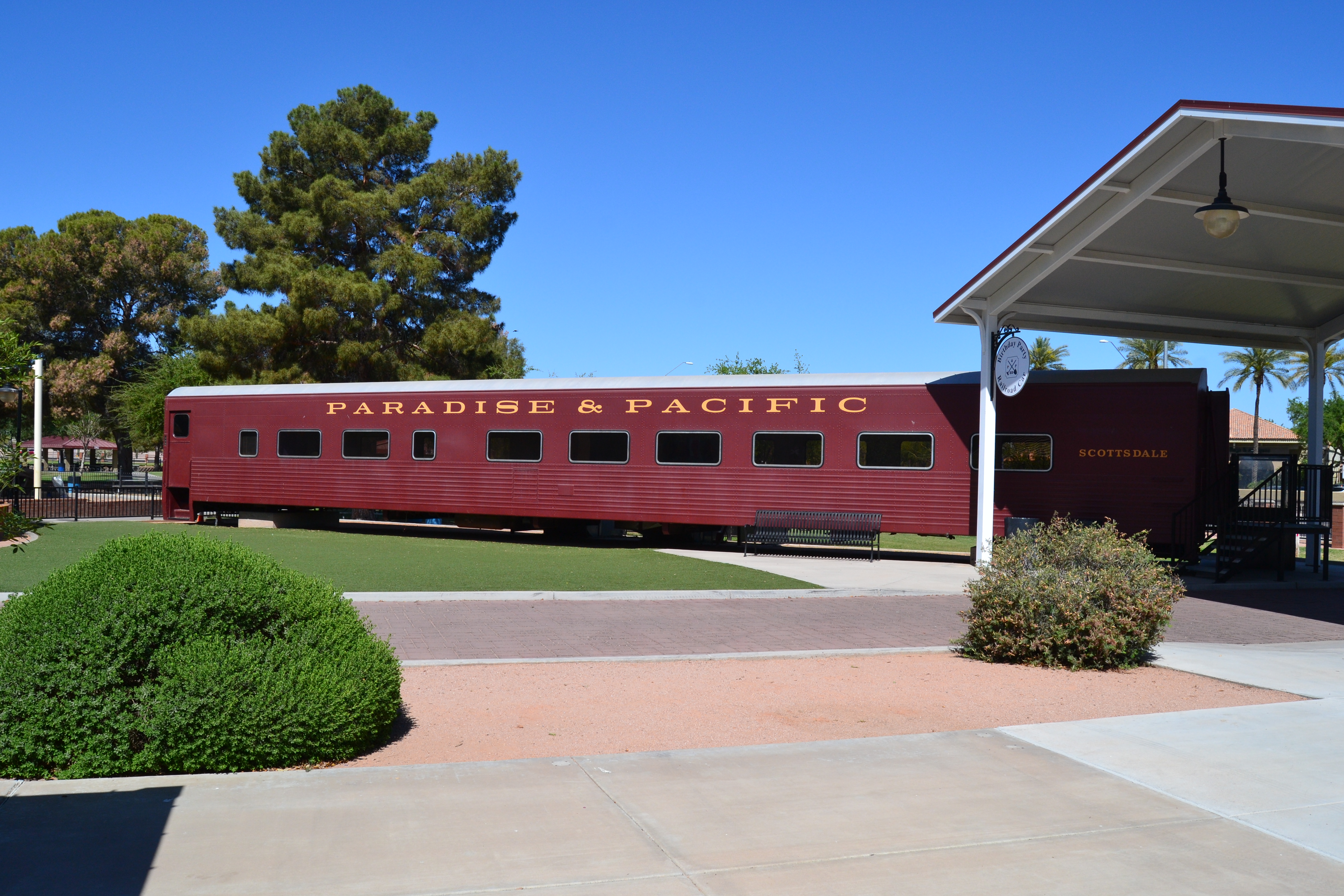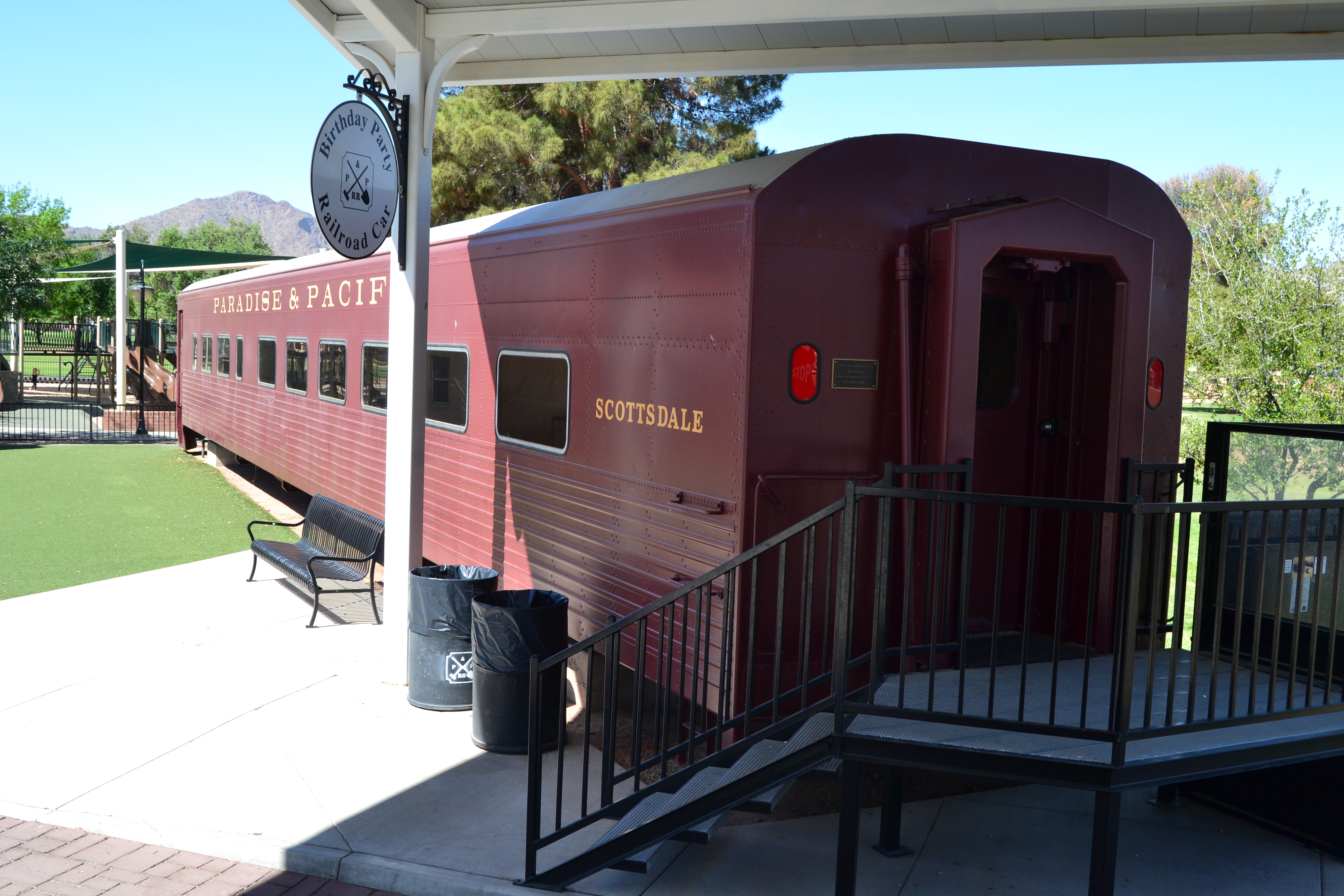 When the Tempo cars were purchased in 1987, a couple of extras were included in the deal (to provide parts, mostly). At some point these cars were sold. After learning of the presence of a pair of Tempo cars in the McCormick-Stillman Railroad Park in Scottsdale, Arizona, Glenn Leasure and I researched and concluded that these were indeed two of the “parts” cars from Denver. They have no trucks and have been completely gutted and turned into “party cars”, reservable for children’s birthday parties and the like.
