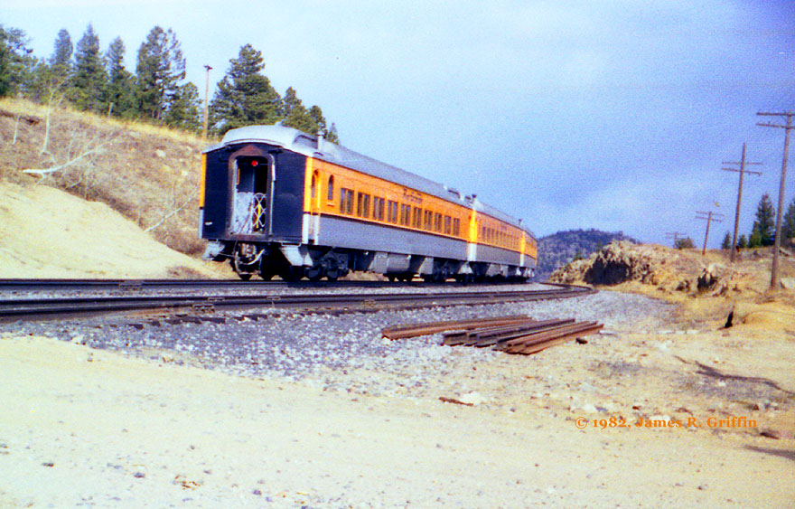 The train heads down the valley, where it will be turned around and held until later in the afternoon. The observation car on the rear (KANSAS) was formerly Rio Grande’s business car WILSON McCARTHY. |