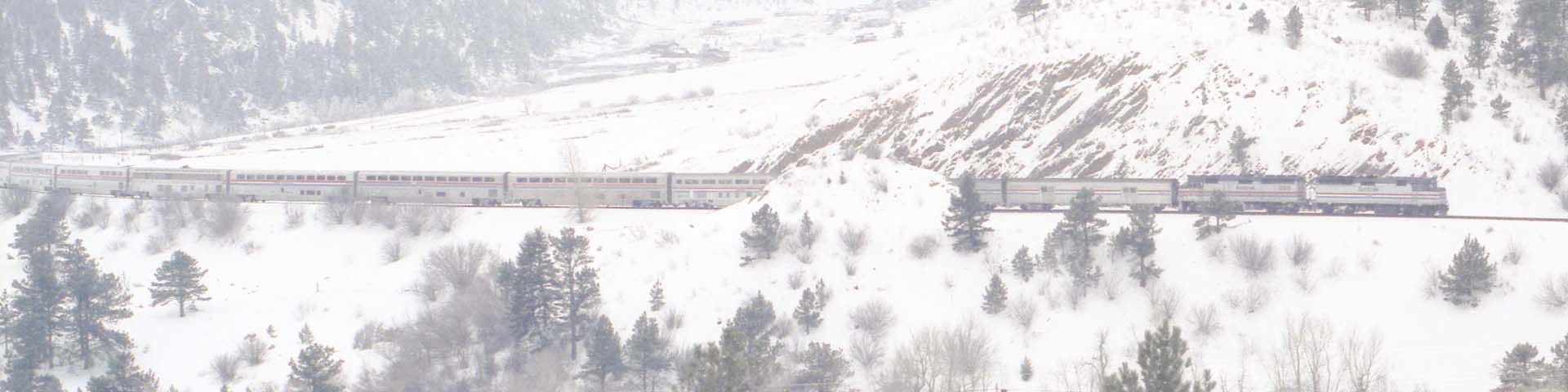 Board! We’re ready to depart from Union Station, pre-dawn on 12/28/1997. The car is MOUNT BIERSTADT. |