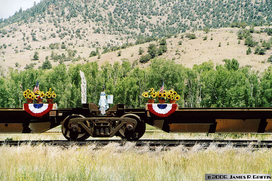 In June 2006 the SLRG was storing hundreds of empty intermodal cars near South Fork. The Wagon Wheel Gap technically owns the tracks where they were being stored. I passed through on 6/30/2006 and photographed the cars. There were miles of these mostly spine cars (TTUX) in storage, stretched out along the line from the track to Creede through town, and nearly to the highway rest area to the east. They were broken at each grade crossing. The total of stored cars extended nearly to Monte Vista– a distance of close to 30 miles! These cars were later scrapped at a location near Fort Garland.