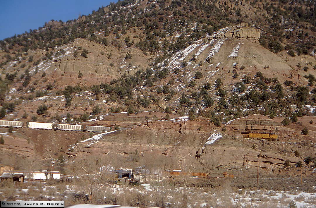 The CSDU Ortner cars were retired in April 2000, after 21 years of hard service. They were replaced that December by smooth-sided 5-bay aluminum hoppers from Johnstown America, which as of this writing have served nearly as long as the original steel cars did. However, around the same time, CSDU’s Colorado-First policy went by the wayside and they started using more and more Wyoming coal; after the mid-Ohs the CSUX train was no longer loading on the Craig branch at all.