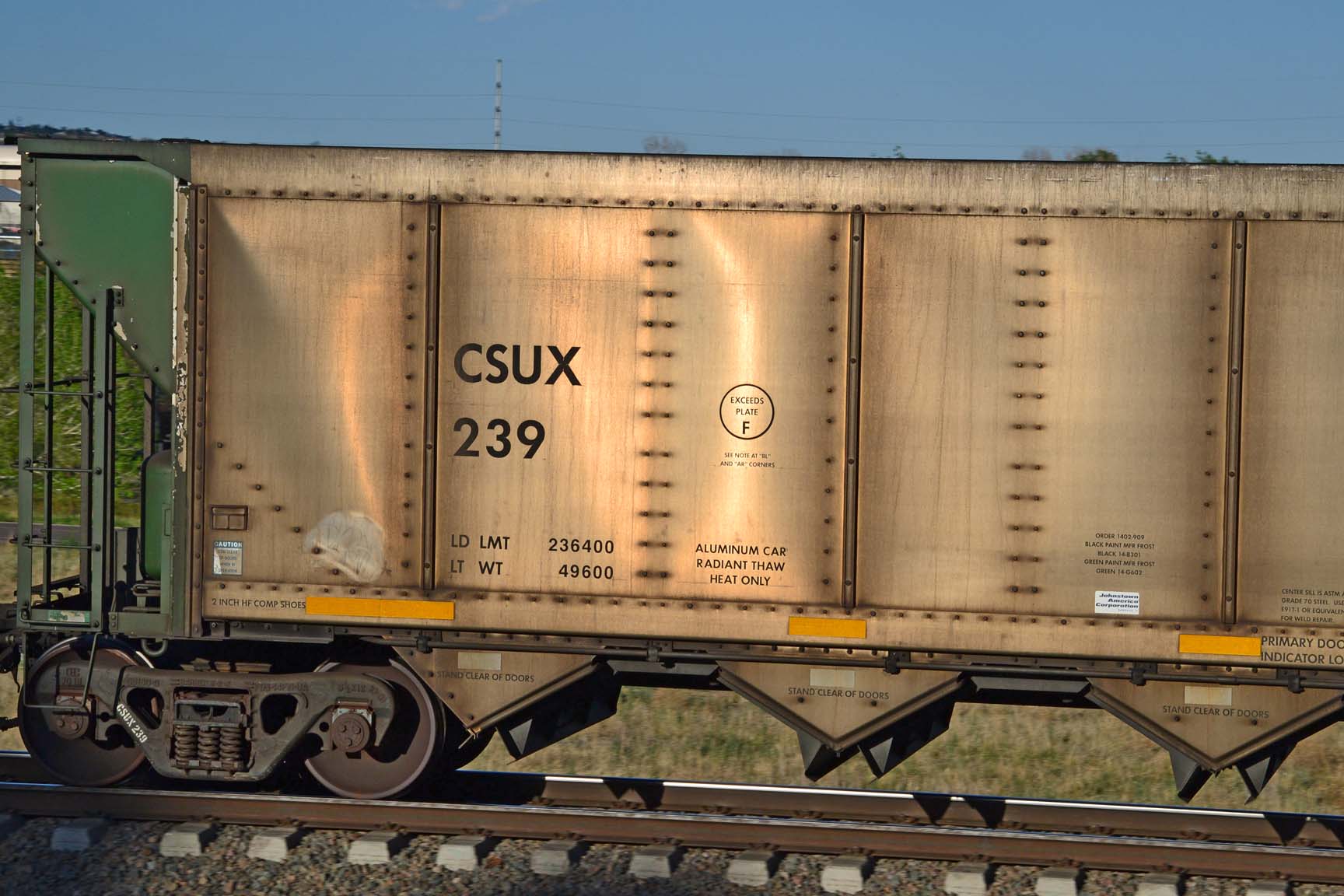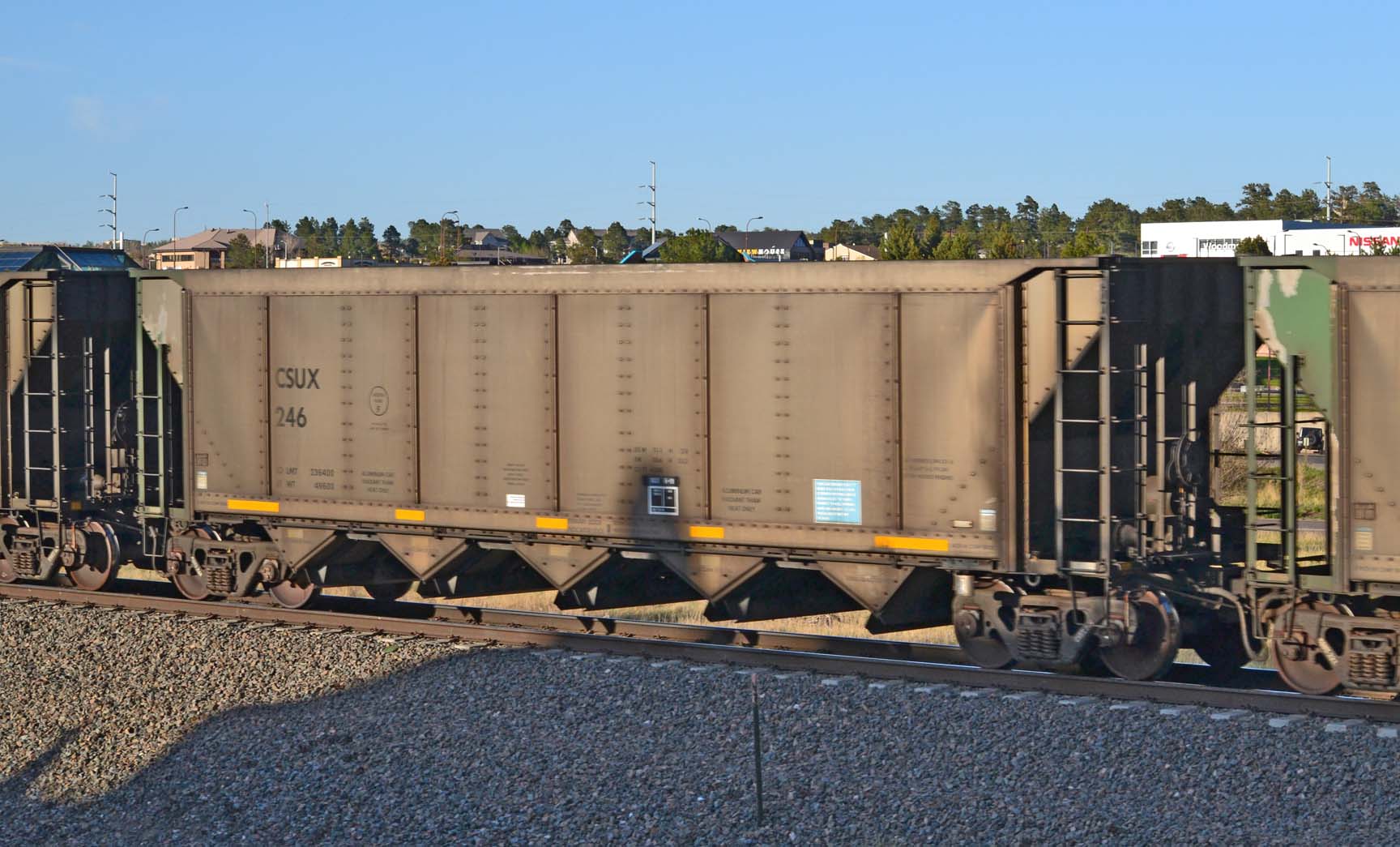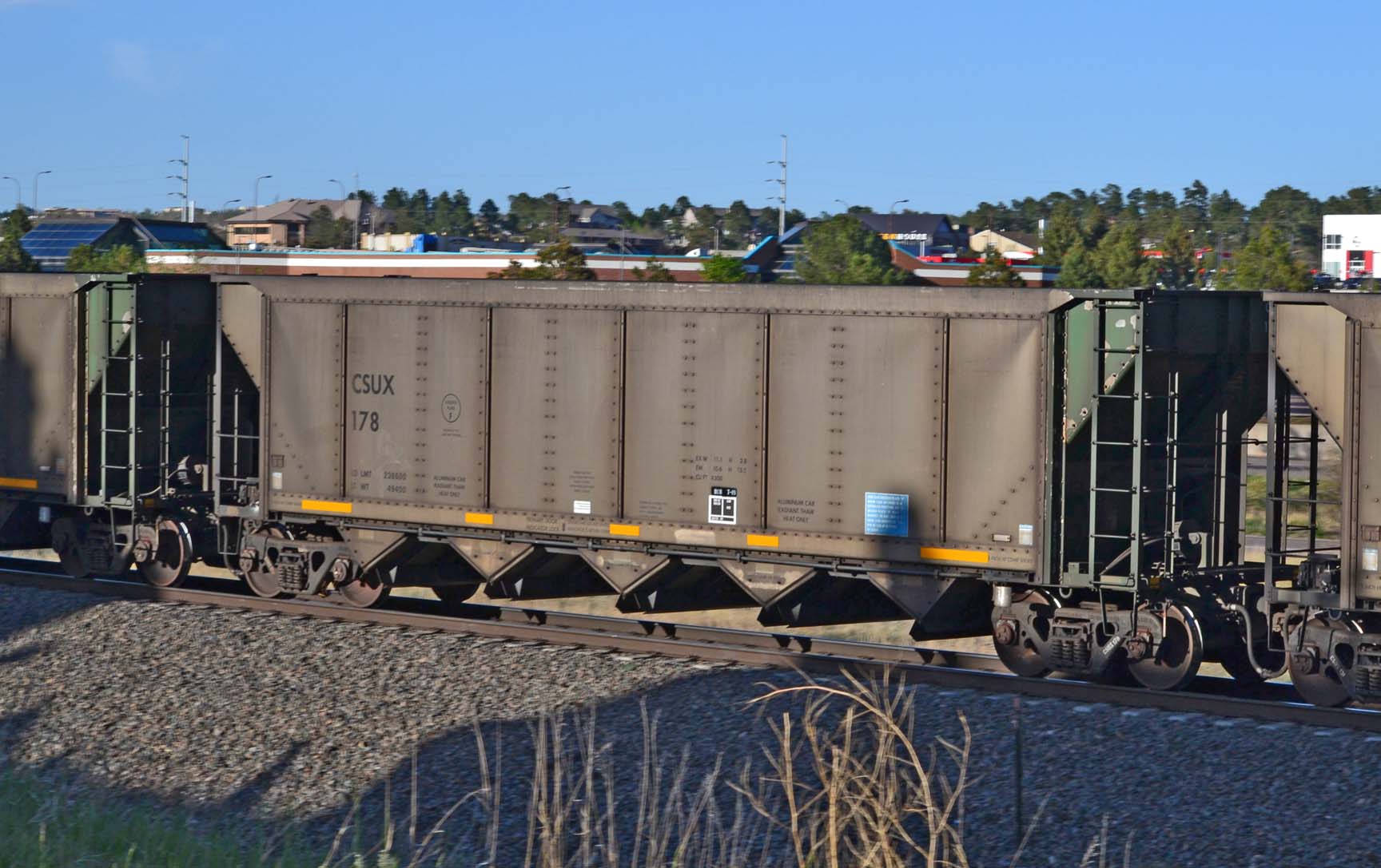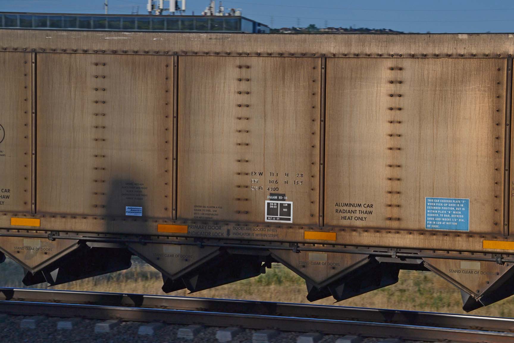 The replacement aluminum cars were built by Johnstown America, FreightCar America, and Trinity as shown here, and lettered XCLX. Note that I don’t actually know the bounds of the number series, only that the cars I photographed fall within these ranges. (I didn’t include all of them; these are representative examples.) Xcel’s territory is quite a bit larger than PSCo’s was, so their overall pool of cars is (or was) considerably larger.
