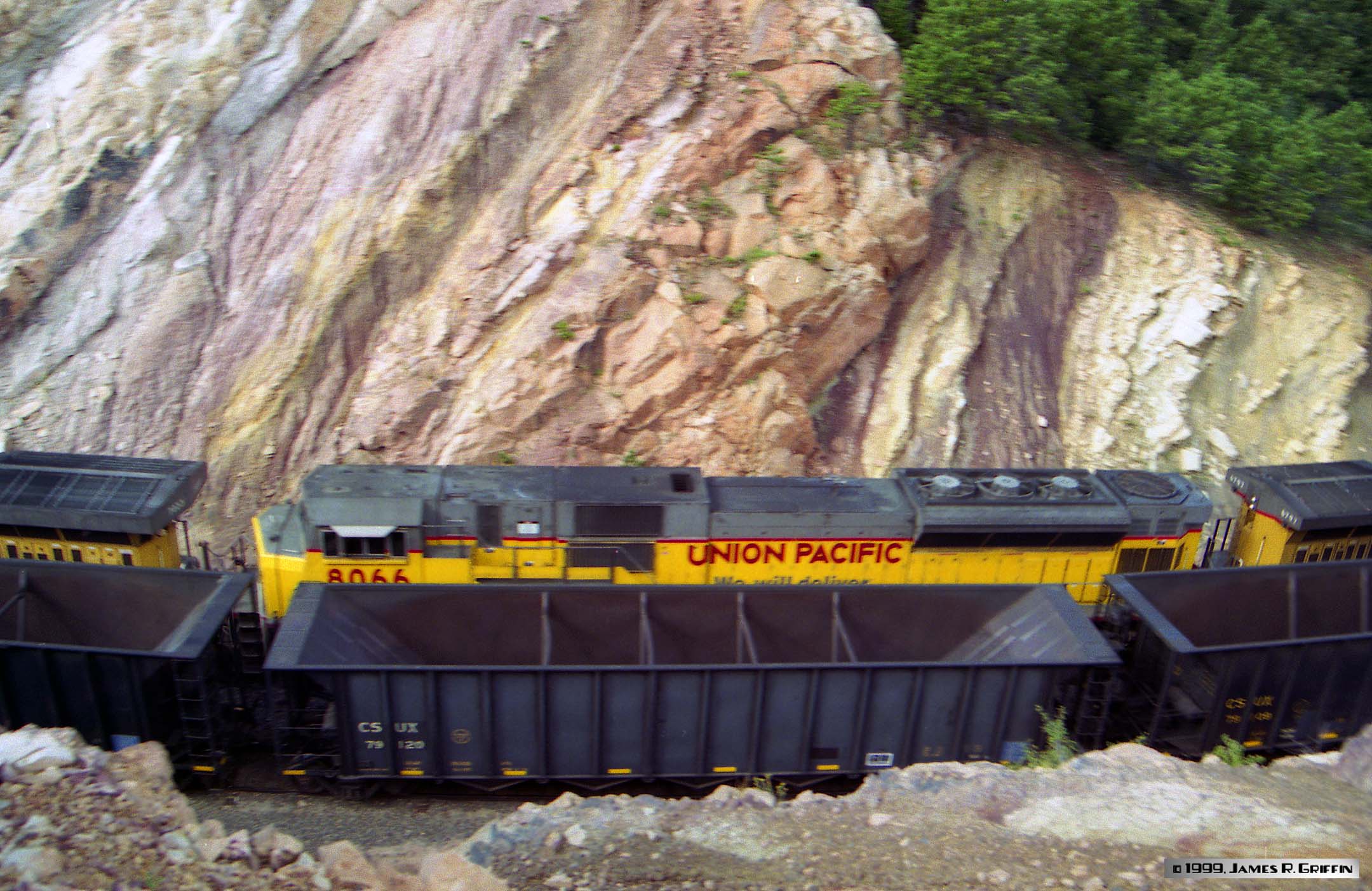 From the early 1970s onward, unit coal trains were a fact of life on many American railroads. A revolutionary concept when first introduced, unit trains shipped a single commodity from a single supplier to a single customer on a single waybill, at a rate discounted below the single-car rate. For our purposes that means that a mine fulfilled a coal sales agreement to a utility by loading a long string of coal hoppers, which the railroad(s) delivered to the customer. Sounds obvious, but when you’re not billing each individual car separately, it greatly simplifies the accounting and logistics. For one thing, there is no switching required en route.