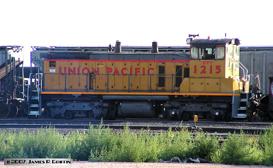 UPY 1215 is an SW1500, originally SP 2629, built in 1972. Here it’s in Denver near the Cargill elevator on 7/29/2007. |