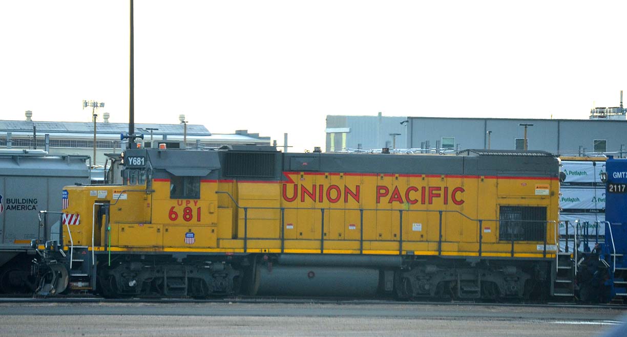 UPY 681 is a GP15-1, originally MP 1681. Built February 1982 and renumbered to this UPY number in May 2003. Photographed in Denver on 12/16/2014. |