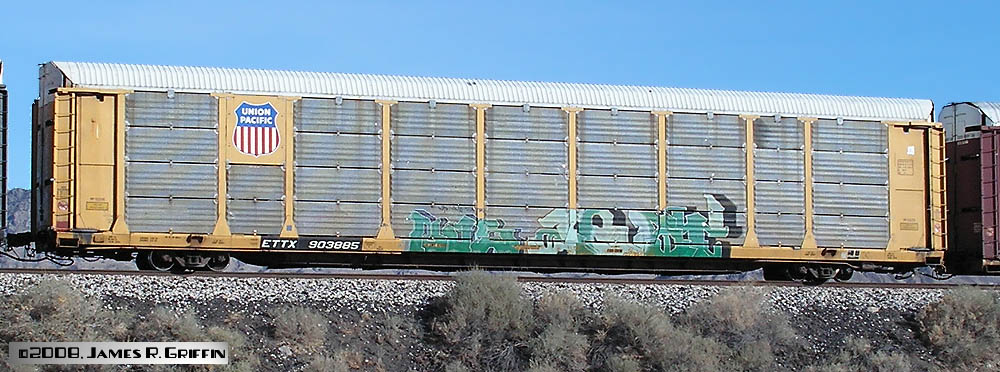 A tri-level UP rack on ETTX 903885 (near Carrizozo, NM, 2/18/2008). |