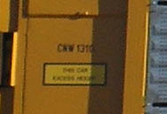 A tri-level CNW rack on ETTX 904299 (near Carrizozo, NM, 2/18/2008). Here’s the rack reporting marks. |