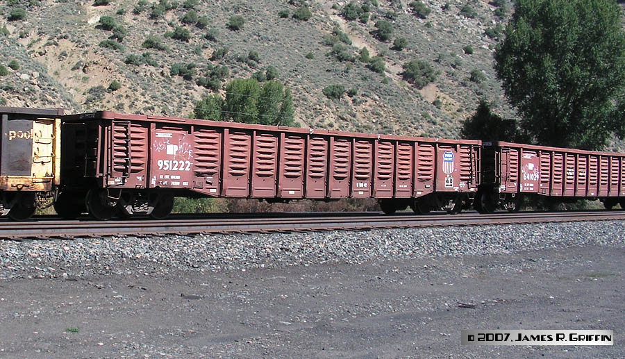 Gon lettered MP 951222 but wearing a UP shield, at Hot Sulphur Springs, CO on 8/09/2007. |