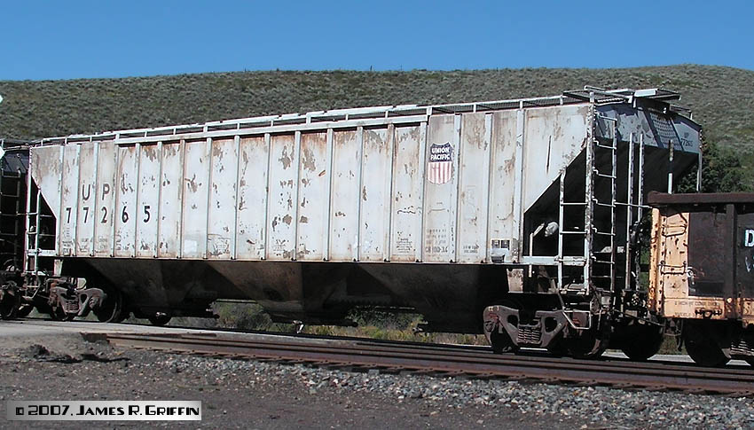 Covered hopper No. 77265, at Hot Sulphur Springs, CO on 8/09/2007. |