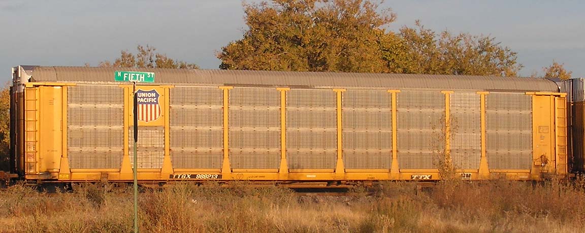 Here’s a sampling of contemporary Union Pacific rolling stock (specifically, freight cars). Being the largest railroad in North America, there are untold thousands of cars to be seen, and I have no plans to even attempt to be comprehensive.
